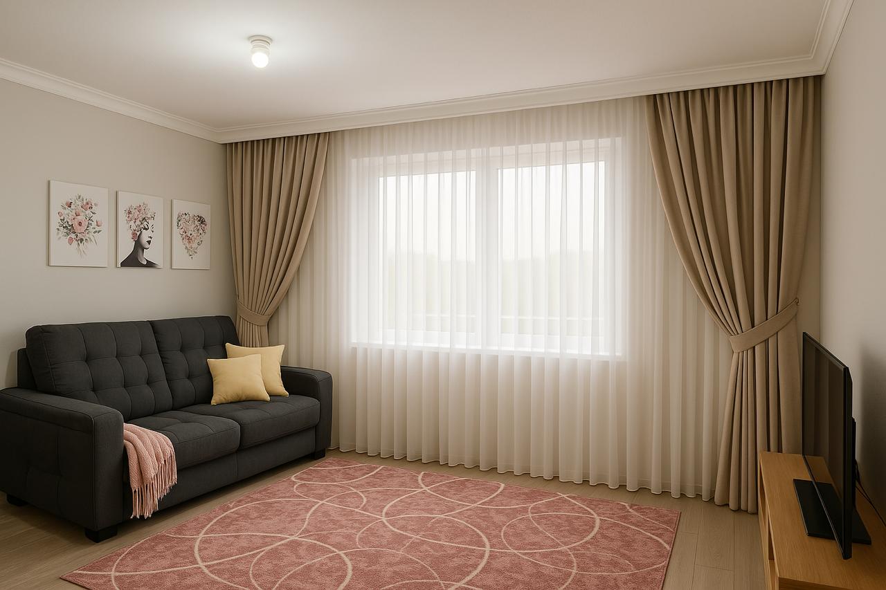 Cortinas de Voil liso dupla.